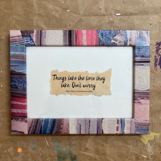 “Things take the time they take, don’t worry.” (Het kost de tijd die het kost, maak je geen zorgen.) Ik heb het papiertje ingelijst om mezelf eraan te herinneren rustig te blijven, geduld te hebben en truien te blijven passen tot ik comfortabele heb gevonden.